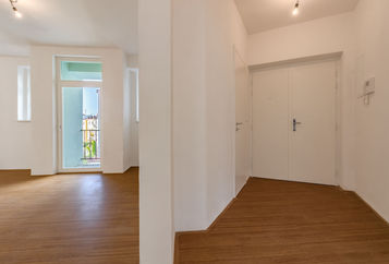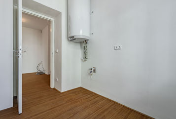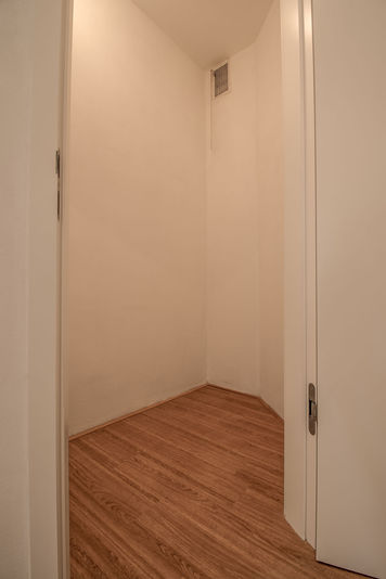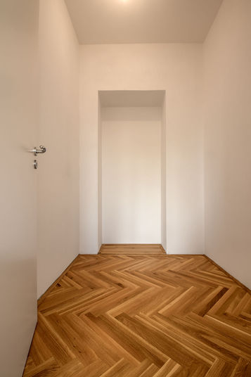 Oddělená šatna přímo u vchodu do bytu podtrhuje skvělou dispozici.